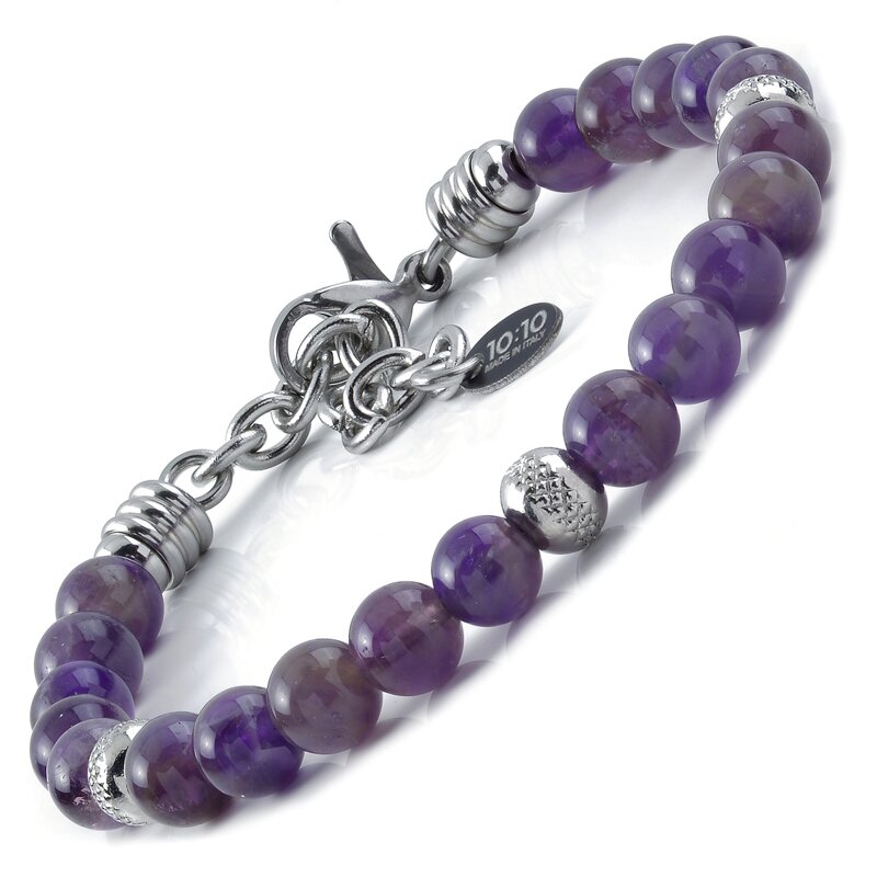 🌿 Eleganza e qualità artigianale – Il bracciale 10:10 Gioielli è realizzato con autentica ametista naturale e acciaio inox di alta qualità, combinando resistenza, estetica e durata in un gioiello senza tempo, perfetto per chi ama distinguersi.
